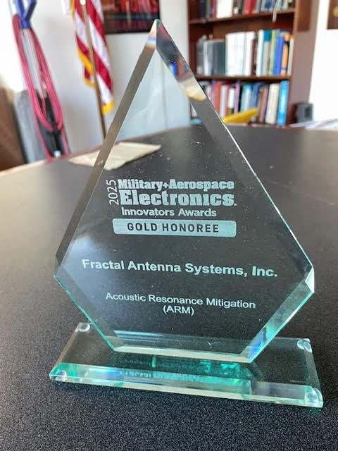 Fractal Antenna Systems, Inc. today announced that it has been awarded the Gold Military & Aerospace Electronics Innovators Award for its breakthrough Acoustic Resonance Mitigation (ARM) technology—an industry-defining advancement in soft-kill Counter-UAS capability.