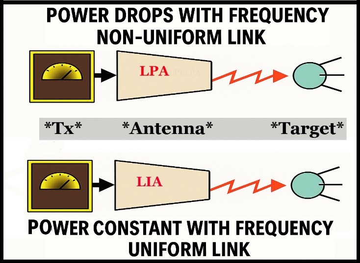 Building on the firm’s decades of innovation in antenna geometries, the patent-pending LIA designs depart fundamentally from traditional wideband and constant-aperture antenna systems. Conventional approaches — such as log-periodic arrays — keep impedance and beam relatively stable but still show delivered power roll-off with frequency in the link. Other broadband forms, like Vivaldi antennas, offer impedance constancy at the expense of varying gain. Antenna systems, such as dishes, or lens antennas, comprise several antenna components to achieve constant aperture and impedance.